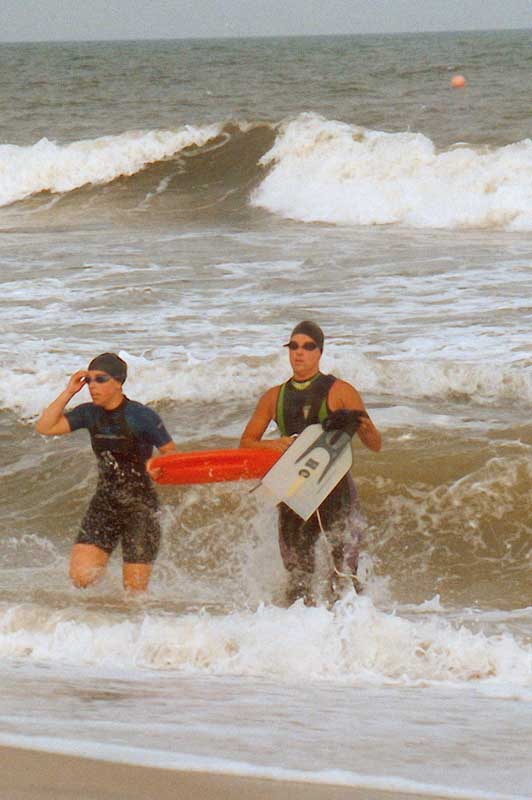 Jenn and Collette showed their stuff with a third place overall finish in the doubles surf boat race. I should also add that they were the 1st Van Duyne boat. 1st and 2nd overall were the faster and lighter self bailing type of lifeboats. I also know that Kate, Ashley, and Collette had a great time with the run-swim-run since Collette was telling me how much fun it was until late into the night!