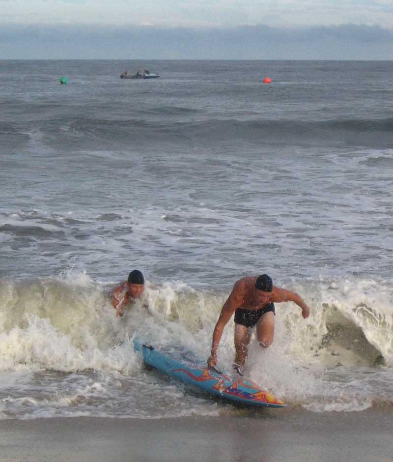 The Iron Man Medley was a turning point event for the tournament. After a fantastic swim by Darren, Ross paddled the Surf City medley team into first place. Mike and I managed to maintain the lead that Darren and Ross handed us for Surf City's only first place finish in the tournament. Now Surf City was in first place with 19 points. Barnegat Light and LBT were tied for second with 18 points, and Ortley was in third with 17 points; it was close! The winner of the first Epic tournament would be decided by the final event, the Run-Row.