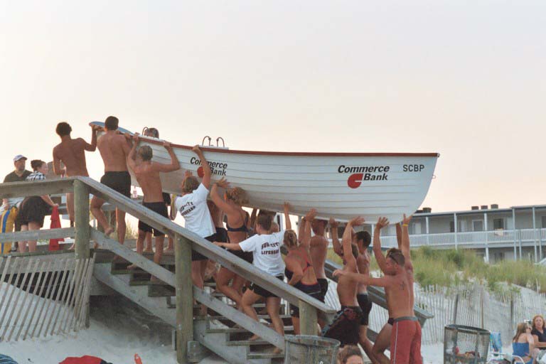 Things took a turn for the better when Taylor, Ross, Mike, and Mark came in third in the paddle relay. Finally, we ended the night with a 6th place finish in the boat relay. Not a bad night but we still haven't gotten "in the groove" of this tournament. On a side note, towards the end of the summer, long-time SCBP guard and Lt. from the'70's and member of the Island winning team in '79 and '80 Pete Jorden stopped by the Borough. He told me that when they used to go to Seaside to compete in the Lavallette and other tournaments that they used to literally CRUSH the other teams!