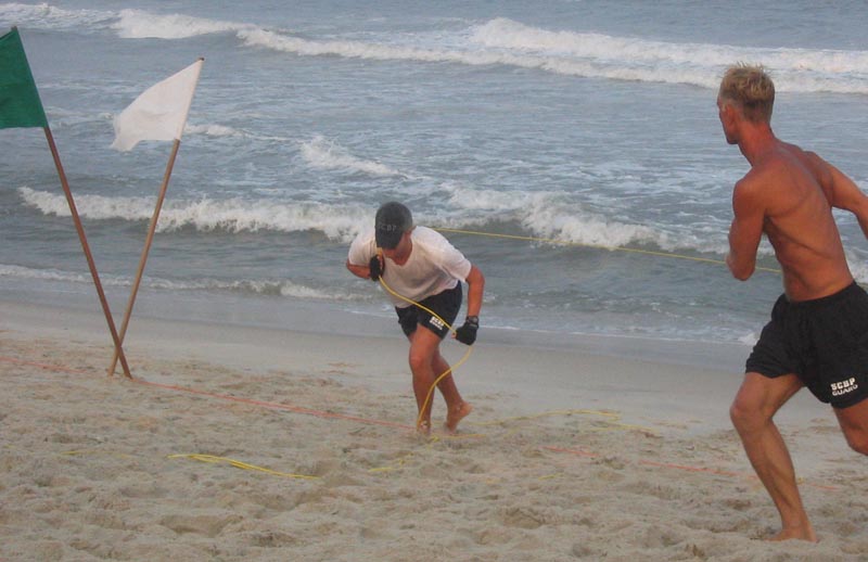 Darren Podolak, Mike Dunn, and Taylor Henderson came in 4th place in the Surf Dash like last year. Next up was Ross, Taylor, and Mike in the paddle relay. As everyone on the squad knows, these guys are our best paddlers and they fought with the Township Aussies (or year round US guards) the whole way and ended up with a close 2nd place finish. While LBT was starting to pull away from the field in the overall scoring we were still in the hunt.