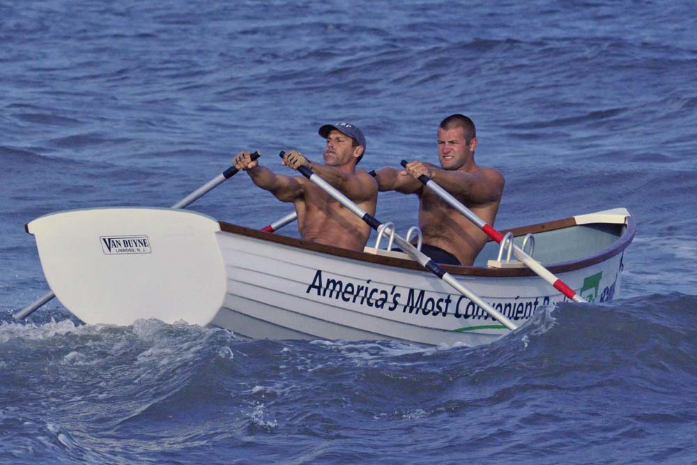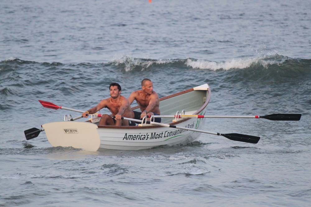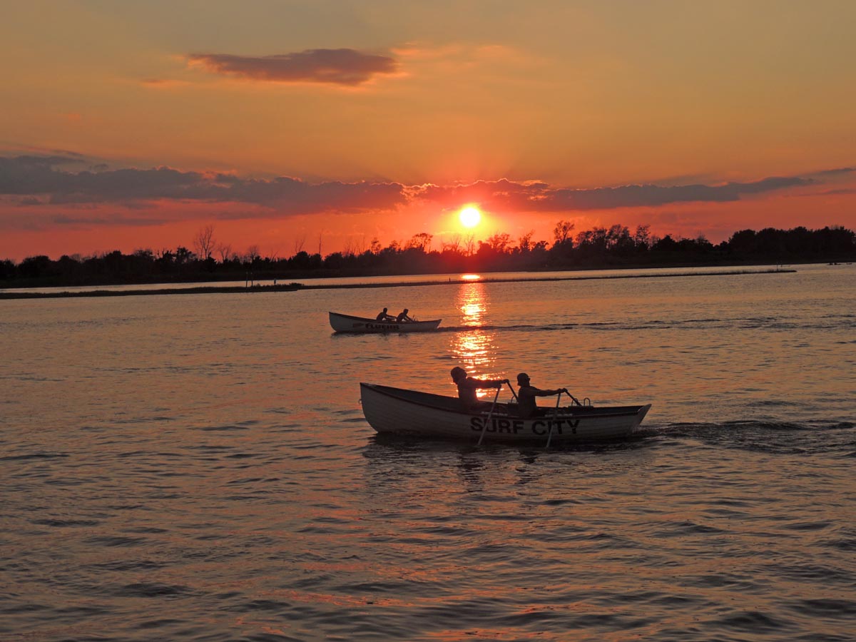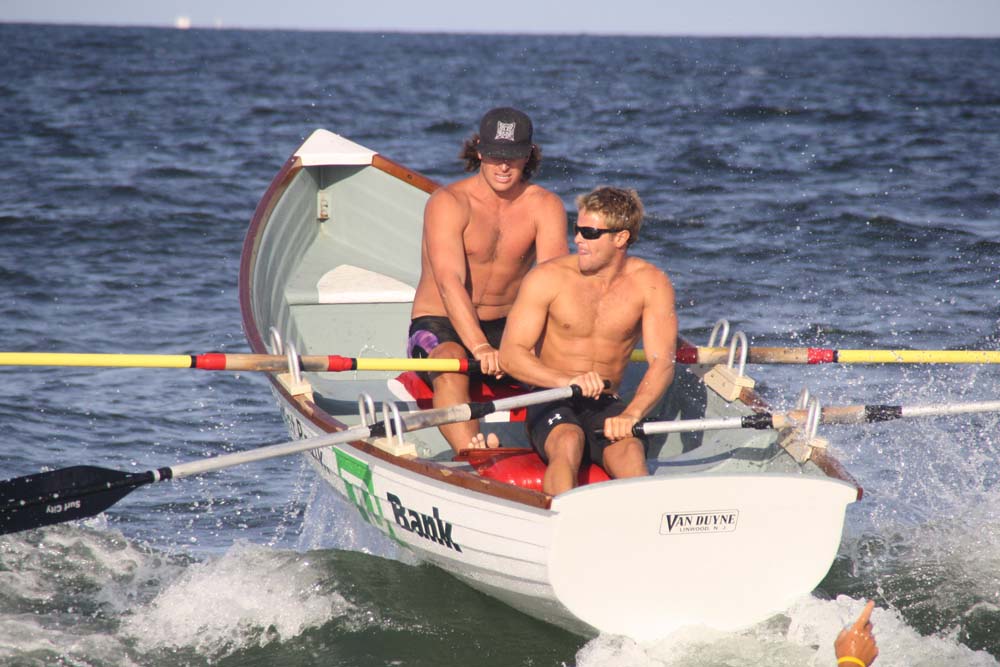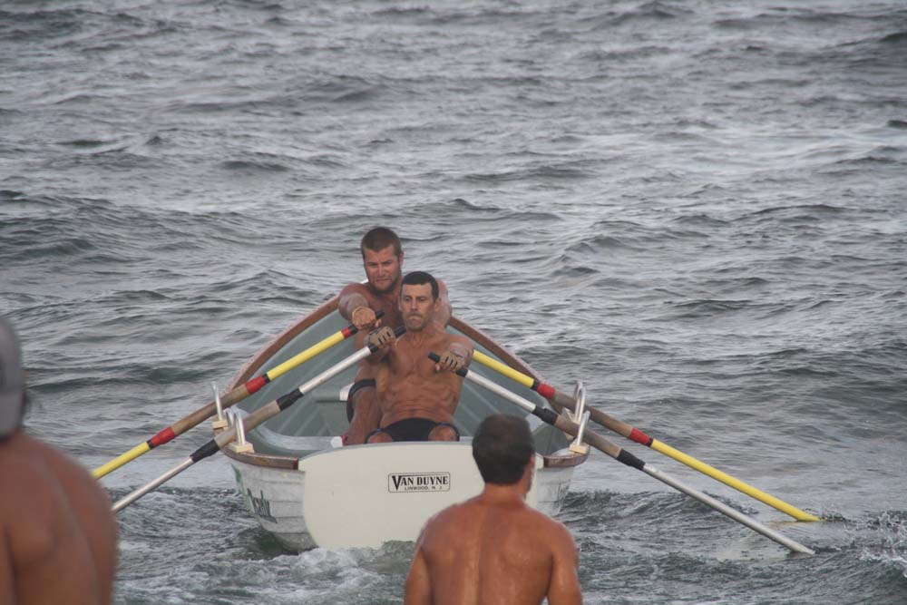 Having just barely won this race last year we knew we'd have our work cut out for us against the "Swift" boat from Margate. In addition, there was a solid crew from North Wildwood that showed up. Surf City showed up in force to this one with Jen and Brit rowing our ocean boat, Kyle and Evan rowing our bay boat, and Nick and Joe rowing a borrowed Ship Bottom boat. Nice job to everyone who participated. It was nice to see all of the Surf City faces on the water for a final race.