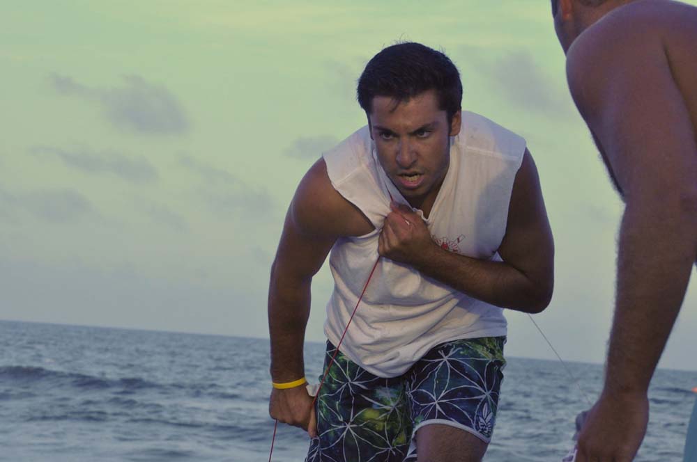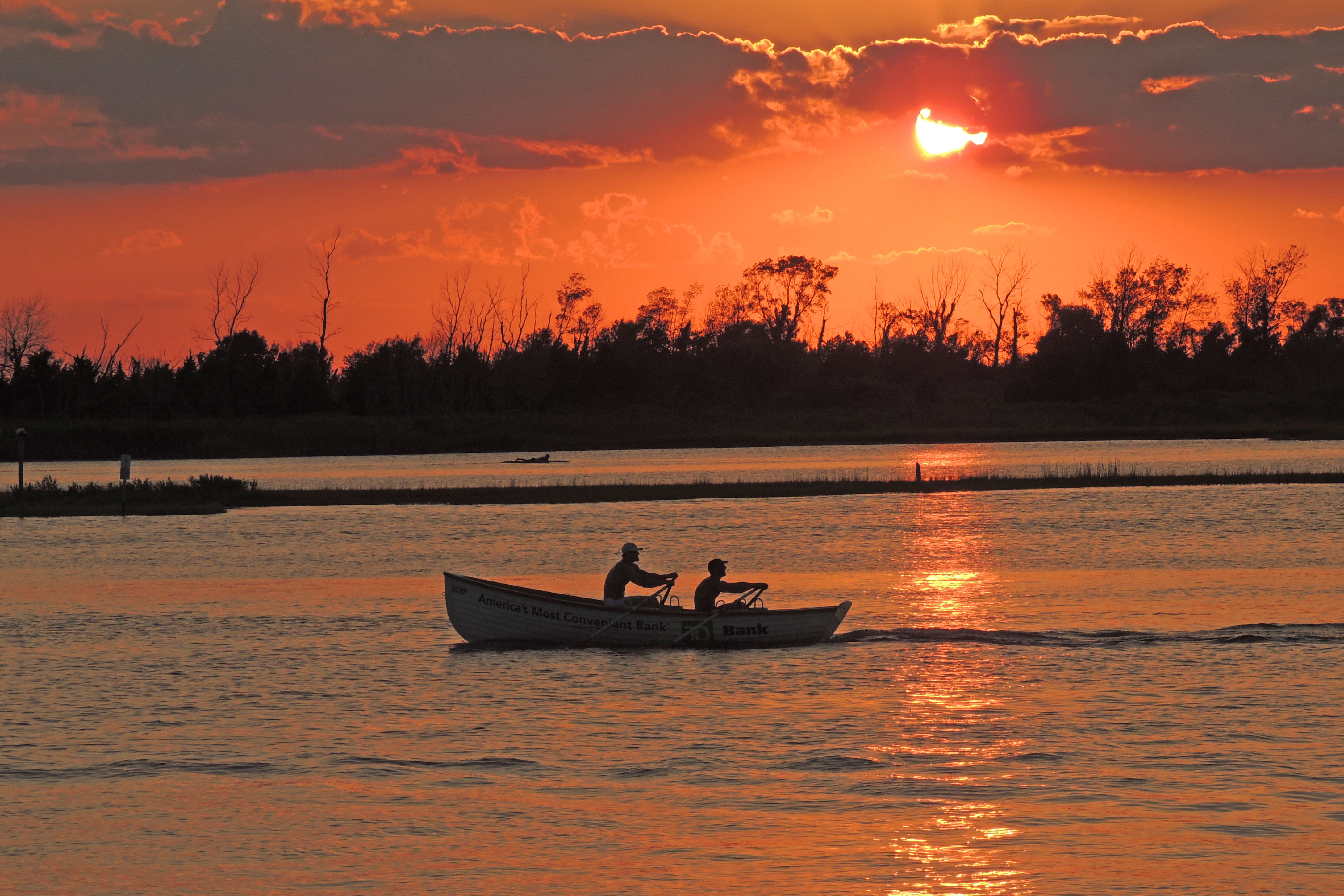 The conditions were absolutely dead flat. Like sheet of glass on the water flat. Really a beautiful night for a row. The start was fair and after a minute or two I knew the boat from North Wildwood was going to be tough. We came into the turn around Flat Island just behind Margate, with North Wildwood just behind us on the inside, trying to cut us off. But then it became really shallow and they collided with us. We were locked up and they were stuck in the sand. Dave yells to me "you've gotta get out and push!"