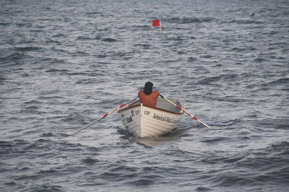 He rowed a straight line to the buoy about even with the lead boats.