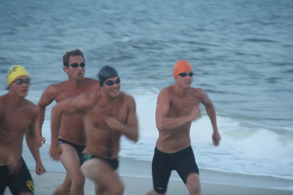 pull swim hitting the buoy a few seconds ahead of the second place BL team.