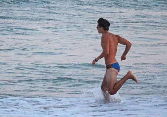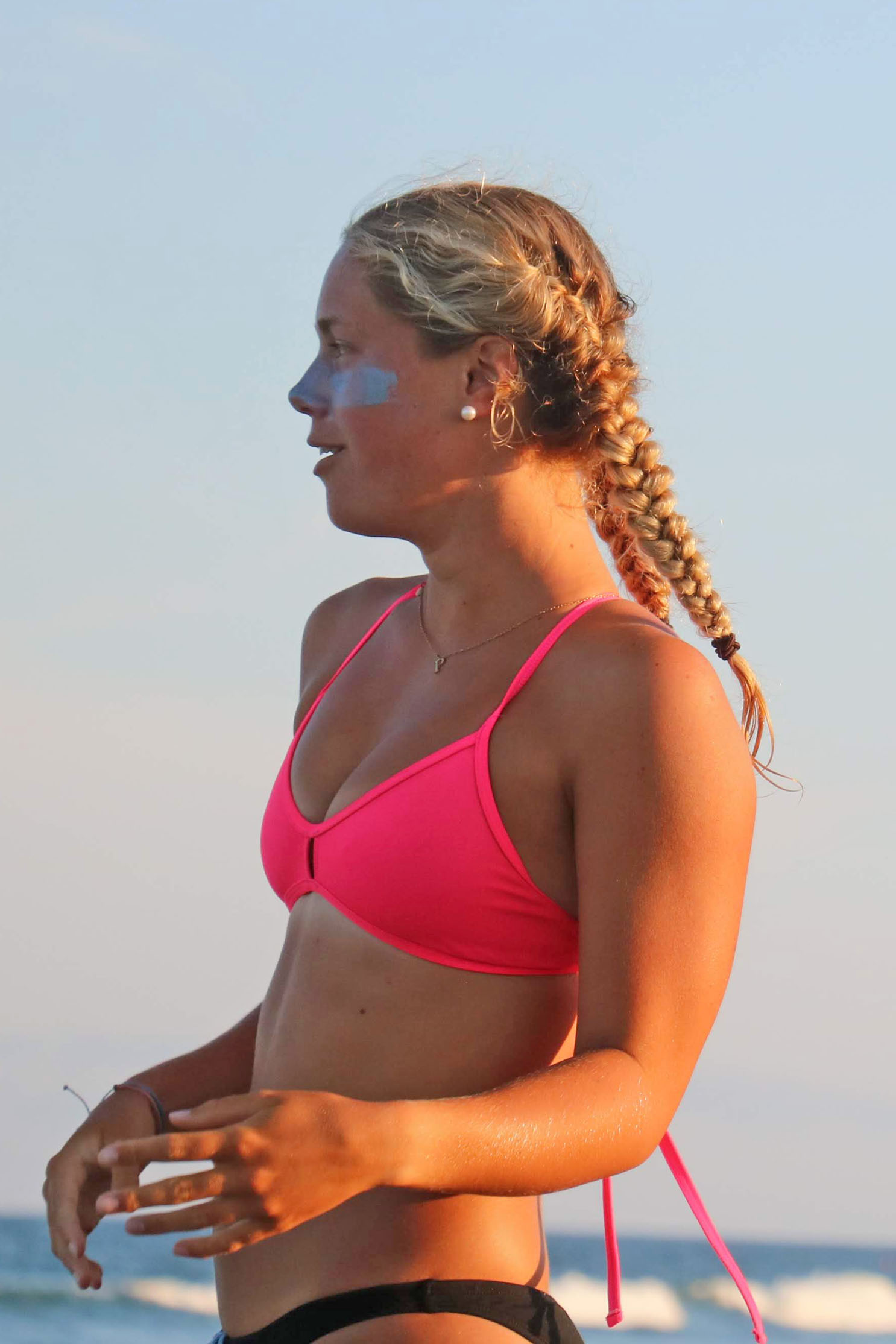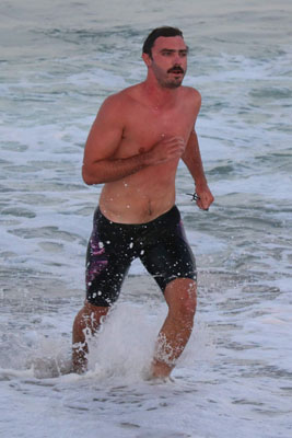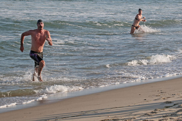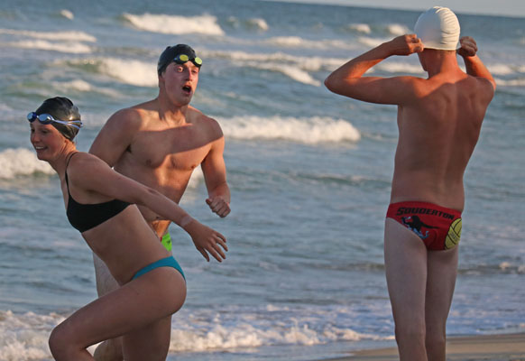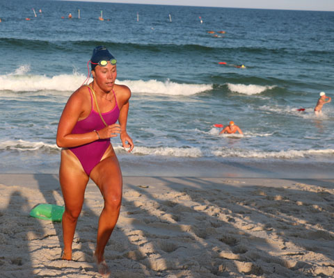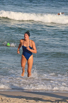 She arrived at the beach in third place just a few seconds behind first