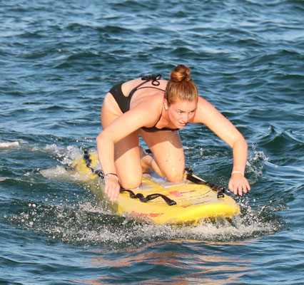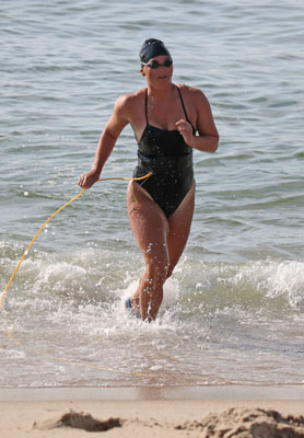 swimming out the line with Lauren pulling her in.
