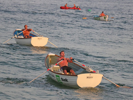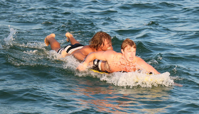 Chris and I started the boat relay and were able to hand the boat to Conner and Max in first place who in turn handed it to Charlie and CJ in first place but also with quite a bit of water in the boat! And BL on their tail! But they rowed really well and coming to the shore had a good 20 yards on the BL boat. 1st Place Boat Relay for Surf City!
