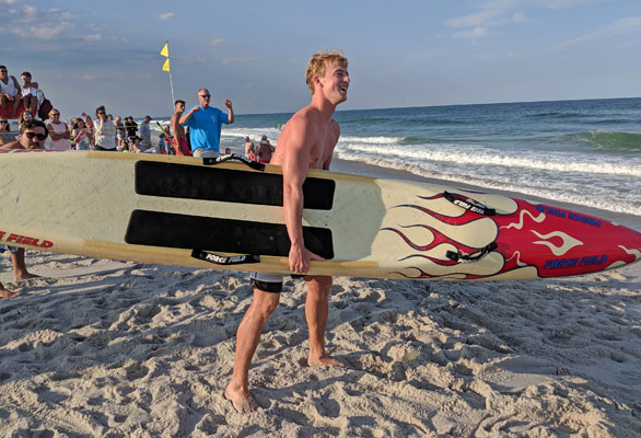 Max is the youngest of a family of boys who have all been great competitors for the beach patrol. Max has worked hard to become a very skilled rower and has paddled many times for Surf City over the years. And of course whenever there is a block pull event he is nearly unbeatable.
