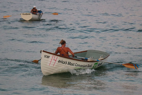 in the row-out/swim-in and Maria entered the water first.