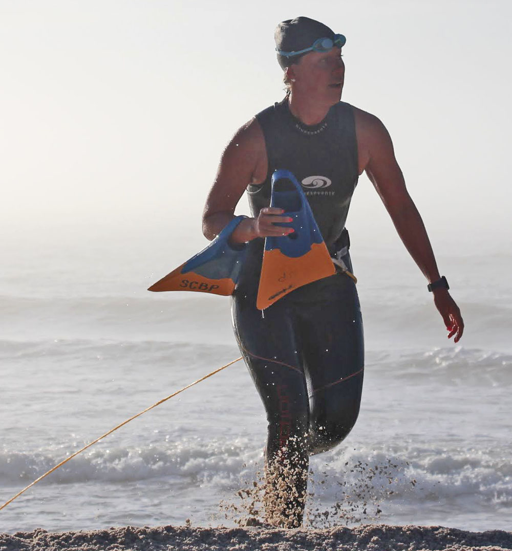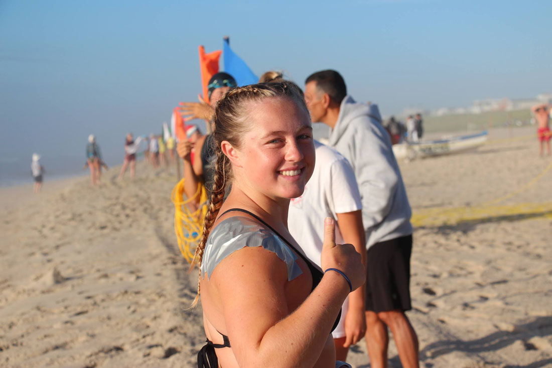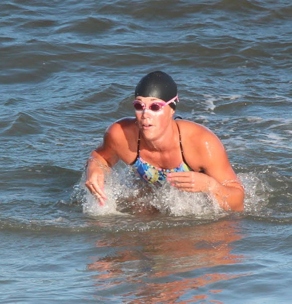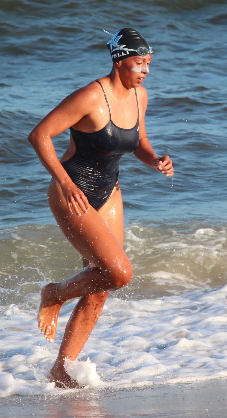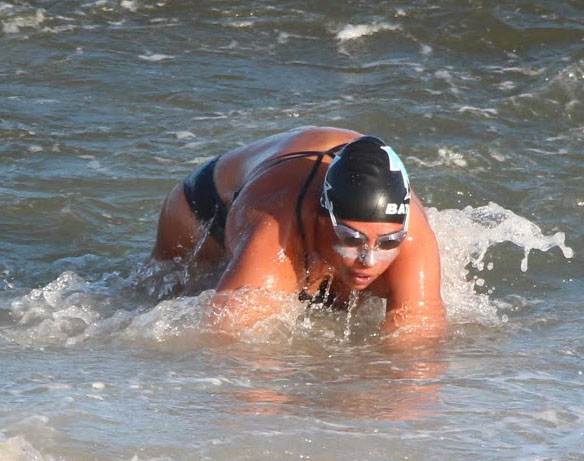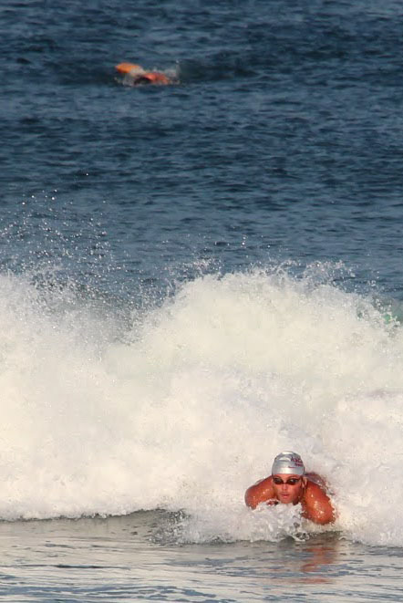 Pepper was up next and had her own batter with another strong female BL swimmer and was able to get out of the water close to first place.