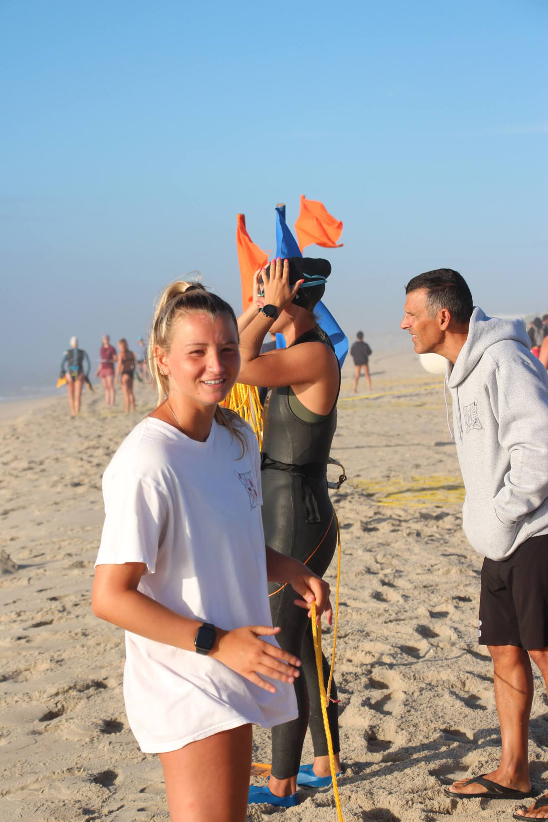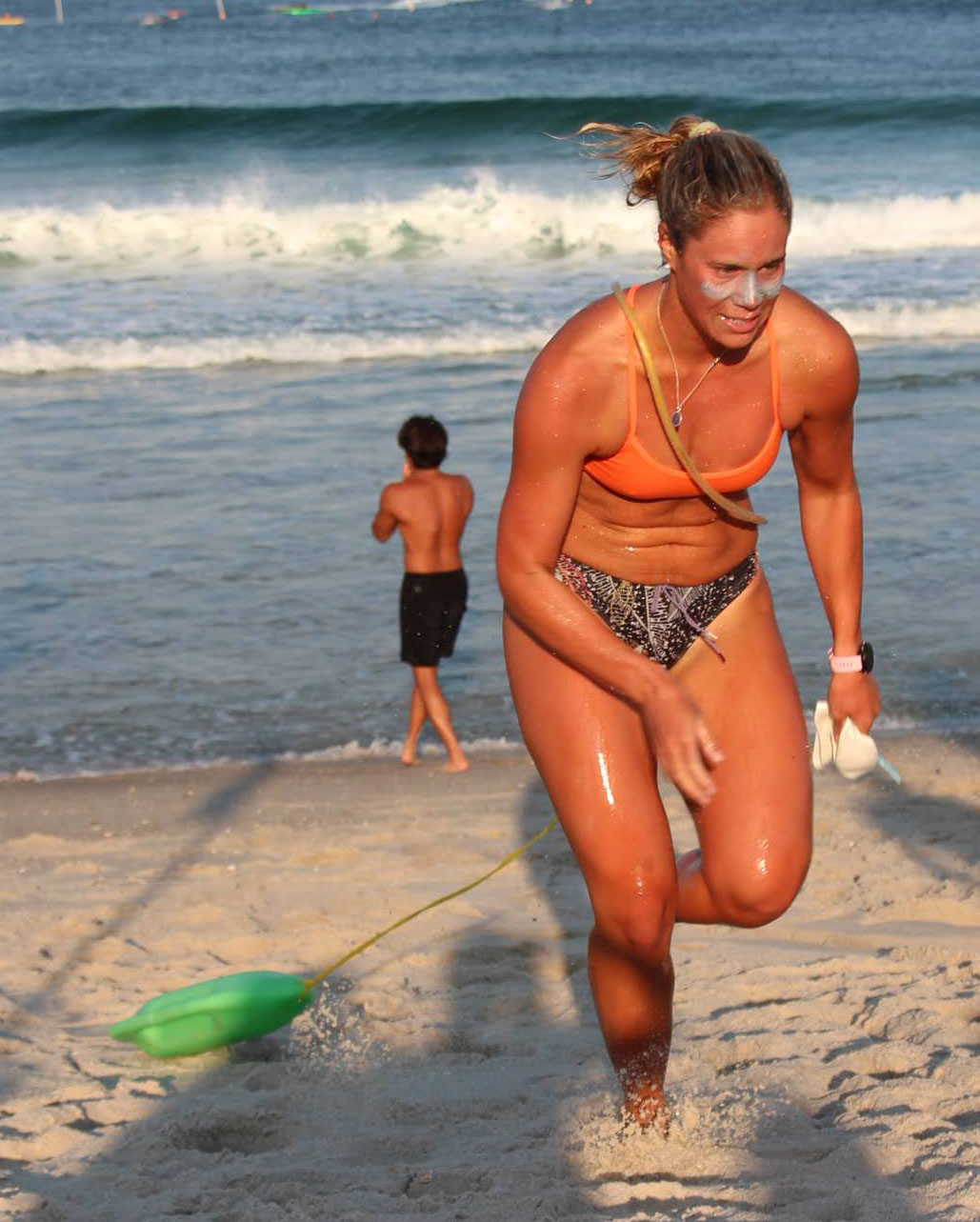 In the final event Bella P. ran the 800 in a very fast group of 7 female runners. She was first to the turnaround flag but the top runners were so focused on the race they ran right past the flag and had to come back to turn it. Bella still got Shane in the water just a few seconds behind the top teams.