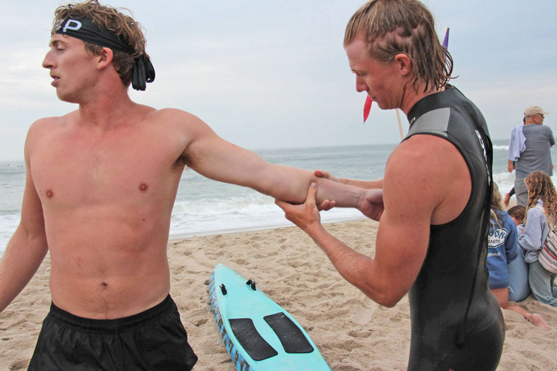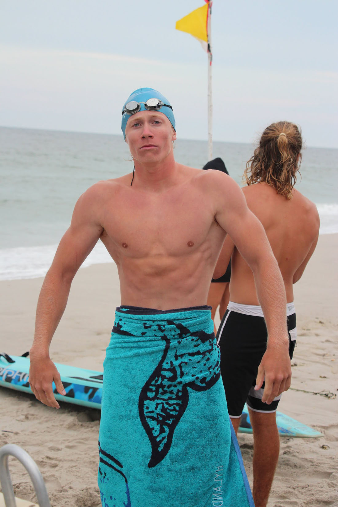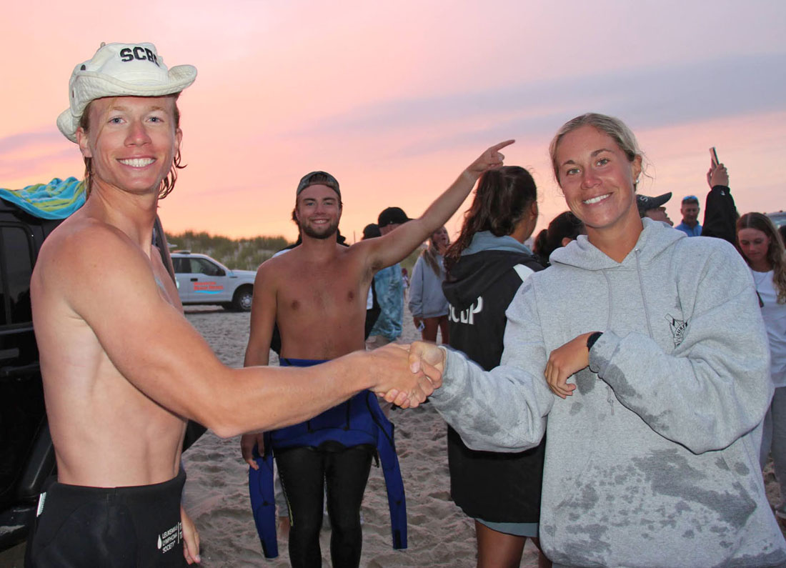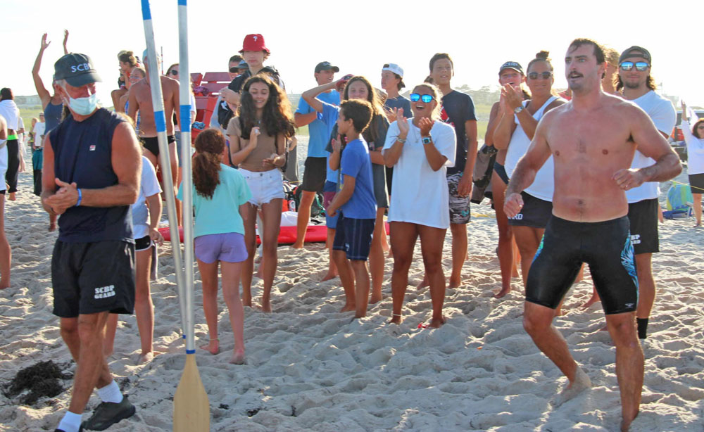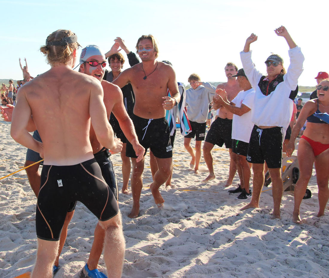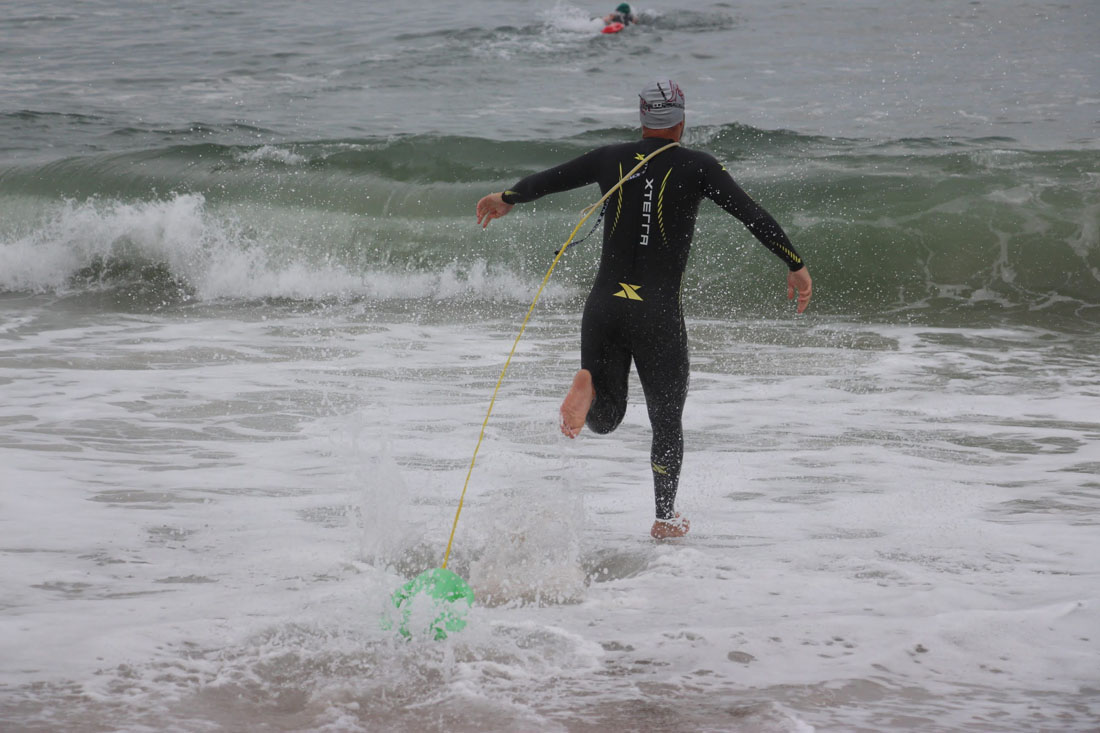 Next up was the Surf Dash with Brooke starting things for Surf City. Brooke competed in an all male field for the first leg and swam a great race tagging Matt S. in third place. Matt had a neck-and-neck battle the entire way around the “Epic-ally” long Surf Dash with BL defending women’s open swim champ.