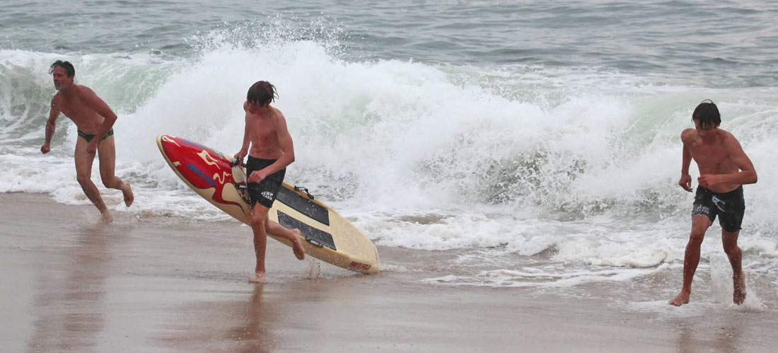 One of the skeleton crew days in September the surf was BIG. I asked Scotty, Pat, and CJ if they thought they could get the boards through it. They all agreed "definitely!" Turns out getting back in was more problematic than getting out. Scotty does a crazy cool barrel roll!