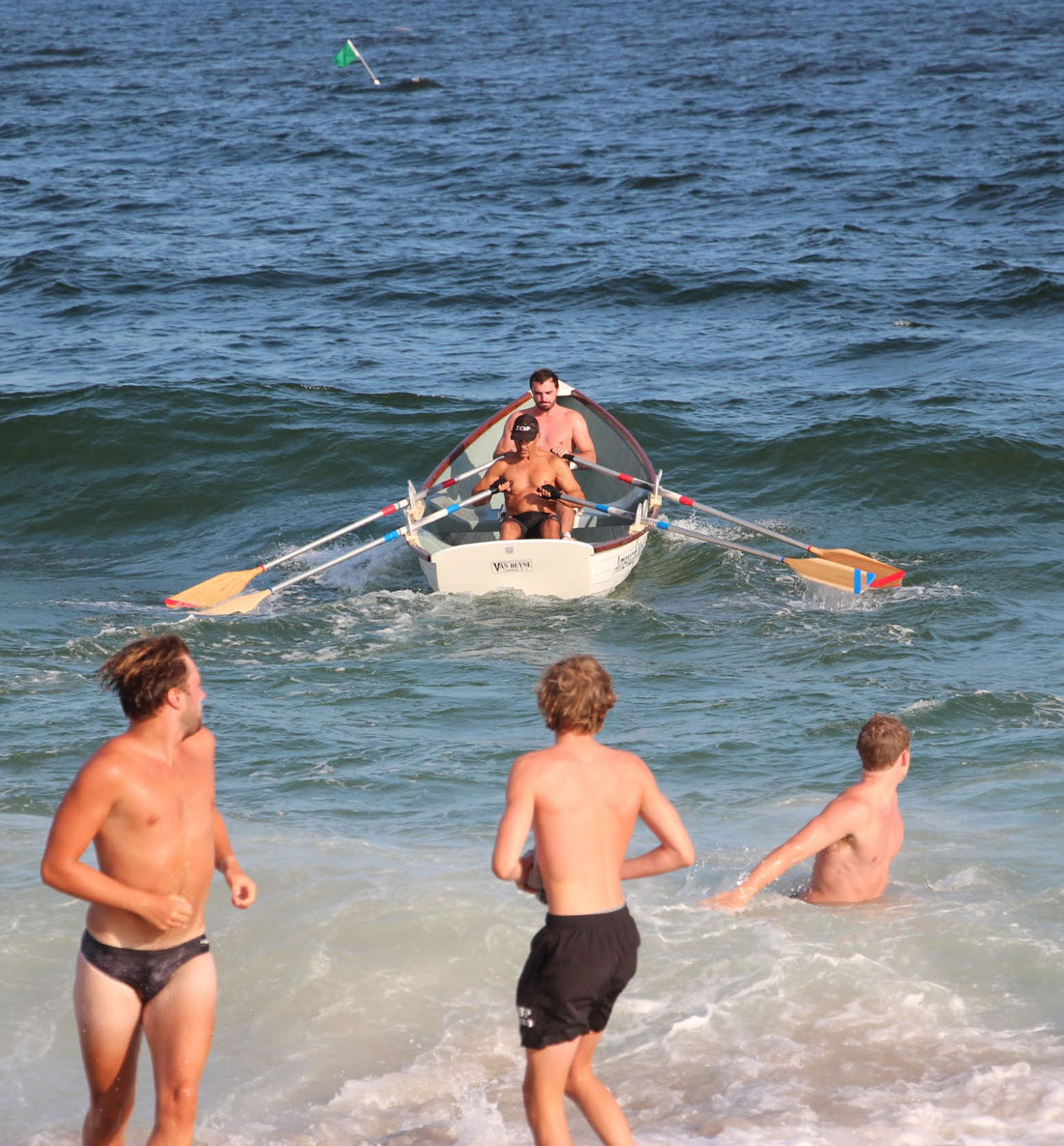 was finish at the green beach flags but only swim to the white buoy!