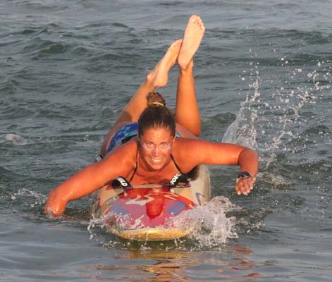 dominating the field of women paddlers and brough home a first place for Surf